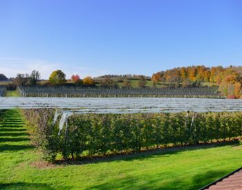 - den Blick auf die Obstanlagen und den nahe liegenden Wald genießen