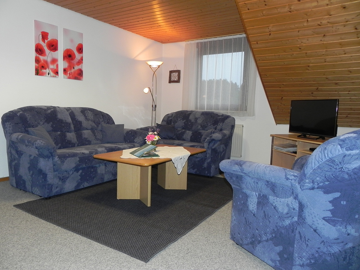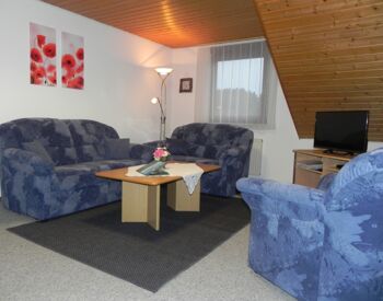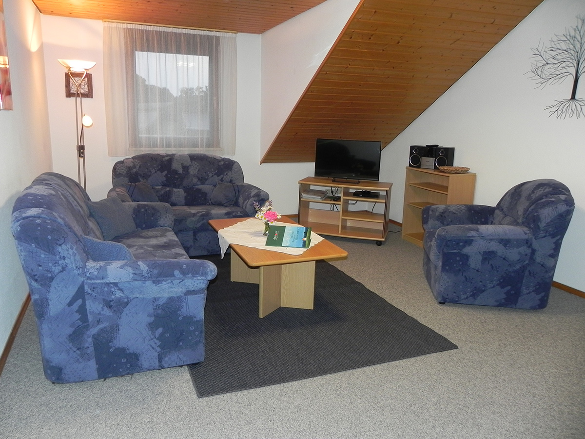 - 1 Wohnraum, mit Couchgarnitur (2 Sofas, 1 Sessel)