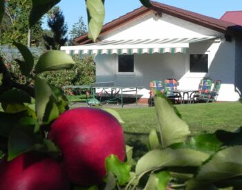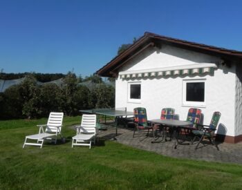 Der Garten steht für alle Gäste unserer Ferienwohnungen zur Verfügung. Der Sitzplatz mit Gartenmöbeln und Markise, Liegestühlen und Sonnenschirm oder die Liegewiese mit dem Schatten spendenden großen, alten Nußbaum laden ein zum:
